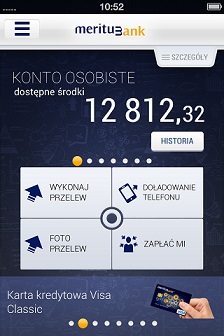 – Jak wynika z badań, użytkownicy bankowości mobilnej najczęściej korzystają z funkcji sprawdzenia salda, historii oraz dokonują przelewów. Dlatego w naszej aplikacji mobilnej funkcje te dostępne są już z poziomu pierwszego ekranu. Dostęp do wszystkich pozostałych możliwości zapewnia wygodne, wysuwane menu oraz widgety, za pomocą których użytkownik może sprawnie poruszać się po aplikacji – podkreśla Marcin Kusznier, project manager odpowiedzialny za projekt bankowości mobilnej Meritum Banku.