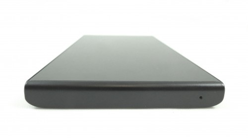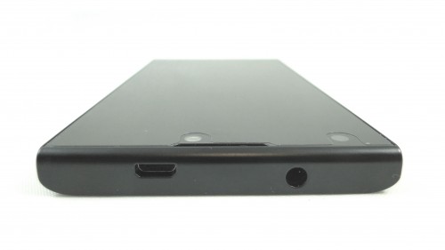 Poniżej producent umieścił swoje logotypy oraz zewnętrzny głośnik, blisko dolnej krawędzi. Po obu stronach głośnika znajdują się także mikro-nóżki, które mają sprawiać, że dźwięk emitowany przez telefon nie będzie całkiem przytłumiony gdy położymy go na stole.