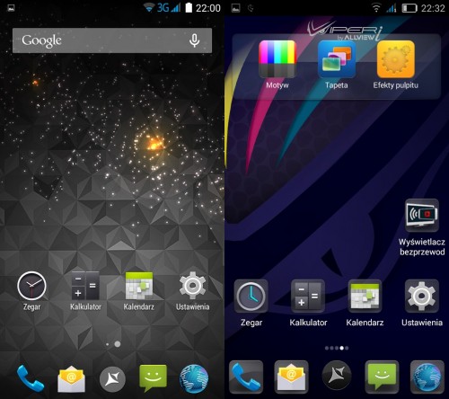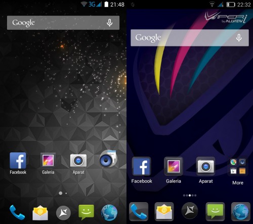 Oba telefony pracują pod kontrolą Androida w wersji 4.4.2 KitKat, jednak w przypadku Vipera i producent postanowił mocniej zaingerować w system. Inny jest już sam ekran główny, ponieważ telefon oferuje do wyboru 5 różnych motywów, z których domyślnie ustawiony jest motyw „Viper”. Mi bardziej do gustu przypadł motyw „Android”, ponieważ jest najbardziej minimalistyczny i przejrzysty, ale do testu pozostawiłem „Vipera”.