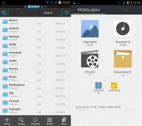 Zdecydowanie bardziej warto przyjrzeć się standardowym aplikacjom. W X2 Twin znajdziemy programy firmy ES – np. ES Eksplorator plików, a w Viperze i jego odpowiednikiem jest Przeglądarka plików, stworzona przez AllView. O ile ES Eksplorator plików wygląda raczej zwyczajnie, i jest podobny do wielu innych eksploratorów dostępnych w Sklepie Play, tak Przeglądarka plików pozytywnie mnie zaskoczyła. Jest minimalistyczna, przejrzysta i ma ładne ikony.