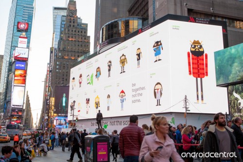 Reklama jest wysoka na 8 pięter i zajmuje przestrzeń między 45 a 46 ulicą. Chętni mogą wziąć udział w grach, w których tworzą swoją androidową postać za pośrednictwem strony lub aplikacji Androidify a następnie na wielkim ekranie muszą utrzymać piłkę w powietrzu czy też pływać, używając swojego ciała. Reklamę widzi codziennie około 300 tysięcy ludzi przechodzących przez Times Square, a ekran powisi w tym miejscu do końca roku.