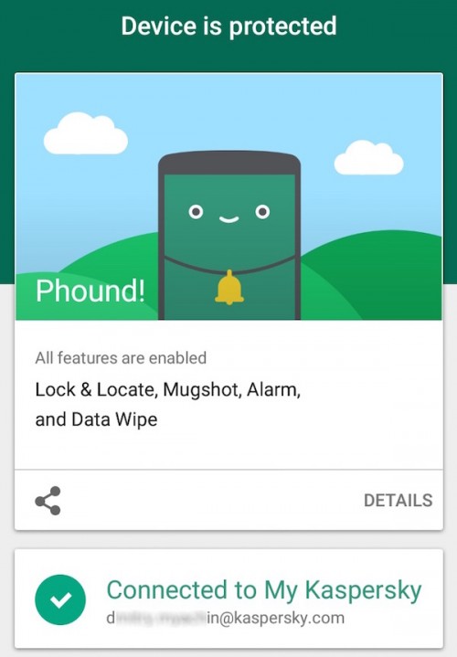 Phound! oferuje właścicielom gadżetów możliwość zdalnego kontrolowania swoich urządzeń oraz przechowywanych na nich danych za pośrednictwem portalu My Kaspersky. W przypadku zgubienia lub kradzieży urządzenia użytkownicy mogą szybko je zablokować, zapobiegając nieautoryzowanemu dostępowi, jak również wykorzystać technologię GPS, GSM lub Wi-Fi w celu określenia pozycji sprzętu na mapie. Aby ułatwić poszukiwanie urządzenia, użytkownicy mogą również zdalnie robić zdjęcia przy pomocy wbudowanego w nie przedniego aparatu lub wyświetlić komunikat na jego ekranie.