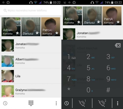 Telefon nie ma problemów z zasięgiem a jakość prowadzonych rozmów telefonicznych stoi na dobrym poziomie. Znajdziemy tu również 2 sloty na kartę SIM, w rozmiarze standardowym oraz micro. Aplikacja dialera jest prosta i intuicyjna.