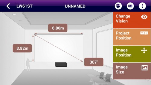 Na to i wiele innych podobnych pytań błyskawicznie odpowie bezpłatna Google Play, dostępna jest bezpłatna aplikacja BenQ Calqulator BenQ. Przygotowano ją by łatwo i szybko można było sprawdzić jakiej wielkości obraz uzyskamy z poszczególnych modeli projektorów BenQ, zależnie od ich położenia względem ekranu lub ściany, na którą wyświetlamy obraz. Dzięki tej aplikacji można przekonać się o różnicach między projektorami ze standardowym obiektywem, krótko ogniskowym (ST – Short Throw) i ultra krótkoogniskowym (UST – Ultra Short Throw).