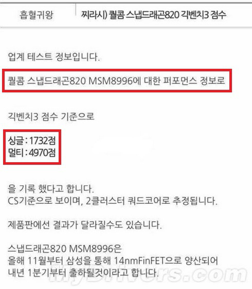 Nowy chipset Qualcomma w benchmarku Geekbench osiągnął wynik 1732 punktów dla jednego rdzenia, czym przebił Exynosa 7420 znanego z Samsunga Galaxy S6 (1486 punktów) oraz Snapdragona 810 (1227 punktów). Jeśli chodzi o test wielu rdzeni, Snapdragon 820 zdobył 4970 punktów, w stosunku do 4424 u swojego poprzednika oraz aż 5285 punktów w Galaxy S6.