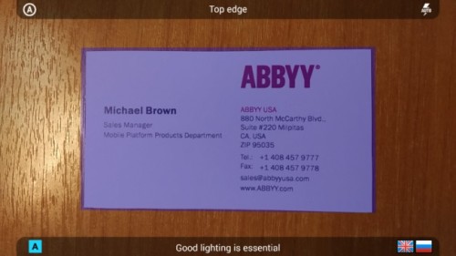 W tym przypadku ważnym instrumentem, który ułatwi Ci osiągnięcie celu jest nowa wersja programu ABBYY Business Card Reader dla systemu Android. Za pomocą tej aplikacji można digitalizować wizytówki w 25 językach z niespotykaną dotąd szybkością i dokładnością.