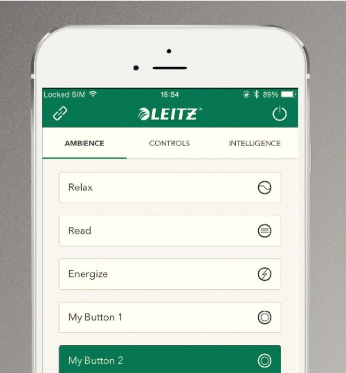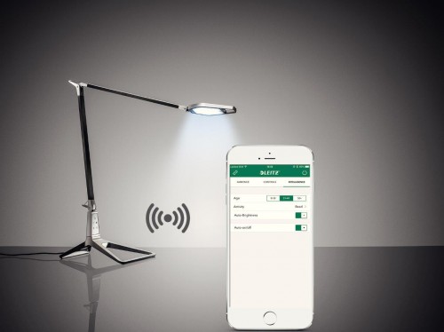 Lampą Leitz Style Smart LED można sterować przez mobilną aplikację, co pozwala na kontrolowanie oświetlenia przestrzeni biurka dotknięciem palca w ekran telefonu. aplikacja pozwala na zdalną interakcję urządzenia z lampką – włącza lub wyłącza się automatycznie zależnie od wykrycia połączenia bluetooth. Aplikacja daje możliwość wyboru poziomu jasności (czujnik oświetlenia automatycznie dostosowuje jasność światła, aby zawsze pasowało do warunków panujących w biurze) oraz na niwelowania dekoncentrujących zmian światła jednym przyciskiem.