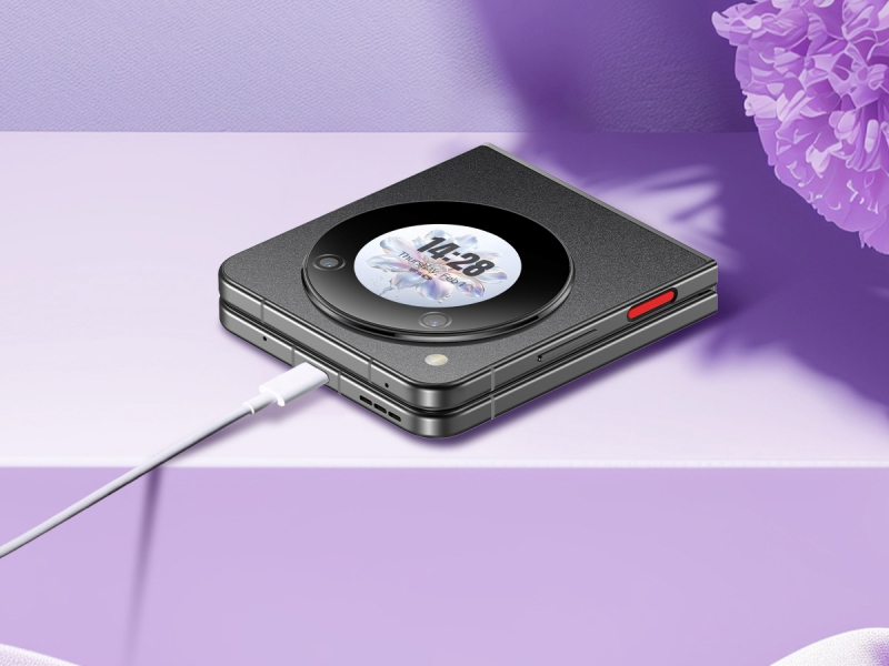 Charakterystyczną cechą nubii Flip 5G jest jej ikoniczny design z okrągłym ekranem OLED o przekątnej 1,43 cala. Za sprawą składanej konstrukcji, smartfon jednocześnie oferuje duży ekran, jak również kompaktowość, dzięki której mieści się w każdej kieszeni, czy torebce. Dodatkowo nubia Flip 5G wyróżnia się matowym wykończeniem z piaskowanego szkła, dzięki czemu nie przyjmuje odcisków palców. Jej krawędzie wykonane są natomiast z wytrzymałego metalu, który dodatkowo podkreśla charakter premium.