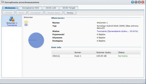 | Typ woluminu | RAID 0/1 oraz dysk pojedynczy |