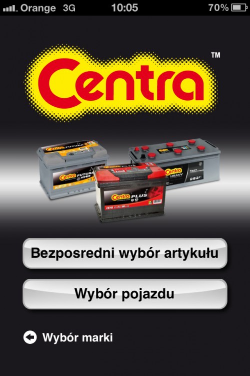 Bezpłatna, dostępna w App Store aplikacja Exide Battery selector jest spójna z bazą danych TecDoc (z której raz na kwartał aktualizowane są dane) i zapewnia dostęp do katalogu z dowolnego miejsca. Aplikacja jest przygotowana w polskiej wersji językowej zarówno dla marki CENTRA, jak i EXIDE. Zawiera rekomendacje zastosowań dla samochodów osobowych, ciężarowych oraz autobusów.