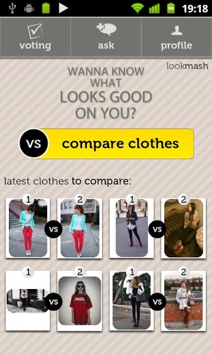 Darmowa aplikacja dostępna jest na trzy rodzaje telefonów, do pobrania w AppStore, Google Play i Market Place. Umożliwia korzystanie z funkcji porad stylistycznych, powiadomień znajomych i doradzania innym. Działa bardzo prosto. Do dyspozycji mamy dwa pola porównawcze. Najpierw wybieramy jedną rzecz, robimy zdjęcie i zamieszczamy w pierwszym polu aplikacji. Podobnie robimy z drugą rzeczą, umieszczając ją w drugim polu aplikacji i czekamy na głosy użytkowników Lookmash z całego świata. Możemy ich naprowadzić, wybierając rodzaj spotkania, na jakie chcemy daną rzecz wykorzystać. Na bieżąco śledzimy wyniki, które mogą być dla nas źródłem inspiracji. Już po kilkunastu sekundach pojawiają się pierwsze. Aplikacja jest pomocna tym, którzy robiąc zakupy, chcą podeprzeć się opinią znajomych. Biorąc pod uwagę ilość dotychczasowych pobrań, a przekroczyła już 5 tysięcy, stanowi użyteczne narzędzie, alternatywne wobec najpopularniejszych dotąd MMSów.