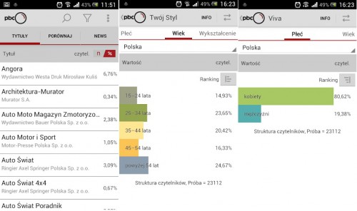 Aplikacja PBC mobile ma przybliżyć szerszemu gronu odbiorców informacje o zasięgach i profilach czytelników naszych tytułów. Aplikacja jest bardzo przyjazna i łatwa w obsłudze. Nie ma na celu zastąpienia dotychczasowego sposobu korzystania z wyników PBC za pomocą rozbudowanej przeglądarki, ale daje możliwość prezentacji danych na kolejnej, wygodnej platformie. Działa na iOS i Adroidzie po ściągnięciu aplikacji z już załadowanymi danymi ze sklepu Apple Store lub Google Play.