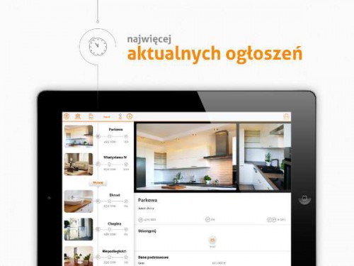 Aplikacja umożliwia mobilny dostęp do największej w Polsce bazy aktualnych ogłoszeń nieruchomości. Proces ich wyszukiwania został zaprojektowany w sposób bardzo intuicyjny, tak aby krok po kroku prowadzić użytkownika do interesujących go ofert.