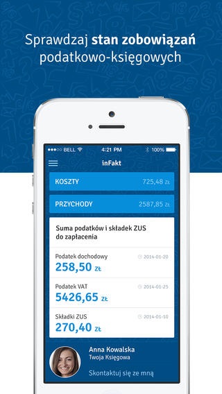 Aplikacja powstała w celu jeszcze większego ułatwienia przedsiębiorcom korzystania z nowoczesnej księgowości. Oferuje szereg funkcjonalności związanych z fakturowaniem i prowadzeniem księgowości. Można dzięki niej wystawiać i przeglądać faktury, zapisywać dane klientów oraz produktów, a także analizować przychody i wydatki firmy.