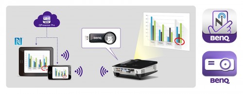 BenQ MW665+ (1200×800) i MX666+ (1024×768) to dwa nowe, pierwsze na świecie projektory z bezprzewodową transmisją NFC (Near Field Communication) wykorzystywaną dotychczas m.in. do tzw. płatności zbliżeniowych kartami i smartfonami. NFC w połączeniu z aplikacjami dla Androida i iOS upraszcza prowadzenie prezentacji i sterowanie projektorem ze smartfona czy tabletu.