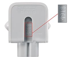 Firma Apple ustaliła, że w niezwykle rzadkich przypadkach zasilacze z 2-bolcową wtyczką do gniazda ściennego firmy Apple, przeznaczone do użytku w Europie Kontynentalnej, Australii, Nowej Zelandii, Korei, Argentynie i Brazylii, mogą pęknąć, stwarzając ryzyko porażenia prądem elektrycznym w przypadku ich dotknięcia. Te zasilacze były dostarczane od 2003 do 2015 roku z komputerami Mac i niektórymi urządzeniami z systemem iOS. Wchodziły też w skład zestawu Uniwersalny zasilacz Apple dla podróżujących za granicę.