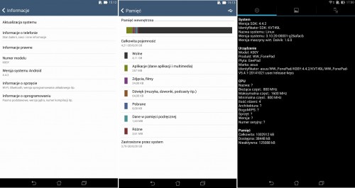 Fonepad 7 wyposażono w dwurdzeniowy procesor 1,6 GHz Intel Atom Z2560, kartę graficzną PowerVR SGX 544 MP2 oraz 1GB pamięci RAM. Urządzenie, które otrzymałem do testów wyposażono w 8 GB pamięci wewnętrznej, lecz dla użytkownika pozostaje 4 GB. Na szczęście mamy możliwość rozszerzenia pamięci poprzez kartę microSD o maksymalnej pojemności 64GB.