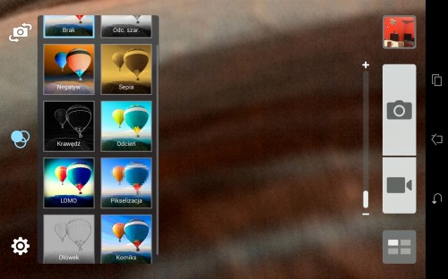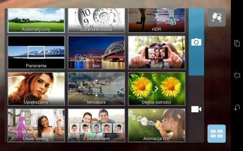 aplikacja do fotografowania umożliwia oczywiście pełną regulację i możliwość ustawień według potrzeb. Oferuje również gotowe tryby fotografowania: HDR, upiększania (rozmywa delikatnie zdjęcie, aby autoportrety były ładniejsze), panoramy, zdjęć nocnych, usuwania inteligentnego, z uśmiechem oraz animację GIF.