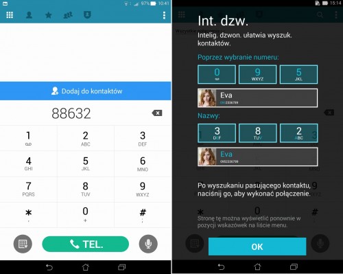Asus Fonepad 7 umożliwia obsługę kart SIM operatorów komórkowych. Dzięki temu można z urządzenia korzystać jak z telefonu komórkowego, czyli dzwonić i wysyłać wiadomości tekstowe. Można oczywiście włożyć kartę SIM operatora i korzystać z mobilnego Internetu co w połączeniu z obsługą LTE może być dobrym rozwiązaniem. Z uwagi na dość spore wymiary trzymanie tak sporych rozmiarów urządzenia przy uchu do najprzyjemniejszych nie należy, tak już „esemesowanie” to przyjemność sama w sobie. Wielkość ekranu pozwala na swobodne pisanie a w połączeniu z dobrą czułością ekranu daje niesamowitą frajdę z użytkowania. Rozmowy odbywały się bez problemów. Mikrofon bardzo dobrze zbiera głos przez co jesteśmy dobrze odbierani przez rozmówcę. Głośnik od rozmów do najlepszych niestety nie należy. Jest cichy i czasem podczas rozmów ciężko było wyłapać słowa. Trzeba wziąć poprawkę na to że jest to egzemplarz testowy i w nie jednych rękach już był, więc być może jest to wina danego egzemplarza. Miłym dodatkiem jest silniczek wibracyjny znany z telefonów komórkowych. Przy połączeniu przychodzącym mamy oprócz głosu możliwość ustawienia wibracji. Brak jest niestety diody informującej o nieodebranym połączeniu czy nieprzeczytanej wiadomości.