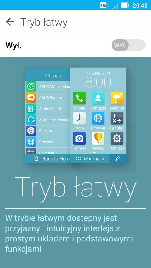 Dynamiczne, ale czy intuicyjne w obsłudze oprogramowanie pozwala zmodyfikować ikony na większe lub mniejsze, spersonalizować grafikę, ale przede wszystkim uporządkować aplikacje w odpowiednich folderach. Do tego bogaty wybór tapet oraz możliwość dodawania własnych projektów pozwalają nadać urządzeniu indywidualnego charakteru. A na plus.