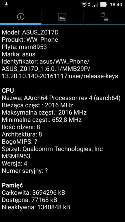 Piękna obudowa wymaga nadzwyczajnych rozwiązań – i taki właśnie jest ZenFone 3 (ZE520KL). Za jego wydajność odpowiada 64-bitowy, ośmiordzeniowy procesor Snapdragon 625 2.0GHz, 4GB pamięci RAM (w sklepach dostępna jest też edycja 32/3 GB) i moduł graficzny Adreno 506. Procesor smartfona wyposażono w 14-nanometrowy tranzystor polowy Fin Field, który oferuje pełnię mocy przy niższym o 35% poborze energii. Wbudowana pamięć wynosi 64 GB, z czego dla użytkownika pozostaje ok. 54 GB.