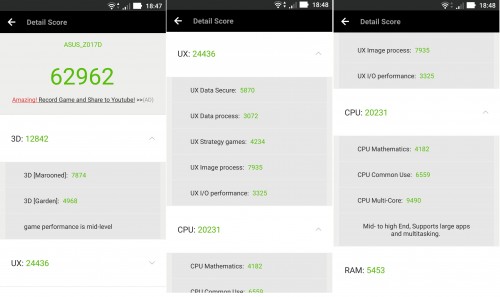 W kwestii płynności działania i wydajności smartfonowi nic nie można zarzucić. Animacje nie gubią klatek, a telefon nie zwalnia przy dużej liczbie aplikacji działających w tle. Granie na testowanym smartfonie to radość z rozrywki, którą zawsze mamy pod ręką. aplikacja Game Genie w ZenUI oferuje narzędzia, z którymi Zenfone po raz kolejny pozytywnie zaskakuje. Podpowiada jak poprawić wyniki, zwiększa wydajność i niweluje opóźnienia oraz pozwala na strumieniowanie rozgrywki online. A do tego opcja przeszukiwania zasobów YouTube’a i odpalania wideoporadników bez wyłączania gry, uszczęśliwi każdego smarfonowego gracza . W benchmarku AnTuTu telefon uzyskał prawie 63 tys.punktów. Przy intensywniejszej pracy tylny panel robi delikatnie ciepły.