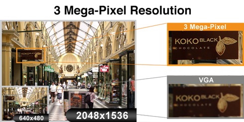Kamery te zostały wyposażone w wysokiej 3 megapikselowy sensor, dzięki czemu są w stanie nagrywać obraz w rozdzielczości do 2048×1536 pikseli.
