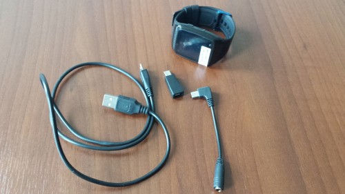W pudełku znalazł się smartwach, kabel microUSB, specjalna przejściówka do podłączenia słuchawek oraz dodatkowa przedłużka.