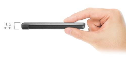 Obudowa ADATA SV620 wykonana została z tworzywa sztucznego o chropowatej strukturze – odpornego na zabrudzenia i odciski palców. Lekko uniesione krawędzie chronią obudowę przed zarysowaniem. Dysk waży zaledwie 88 g, a jego wymiary to 115 x 78 x 11,5 mm. Zamknięty w środku nośnik SSD nie posiada żadnych mechanicznych elementów, więc napęd jest całkowicie bezgłośny. O pracy urządzenia informuje niebieska dioda LED.