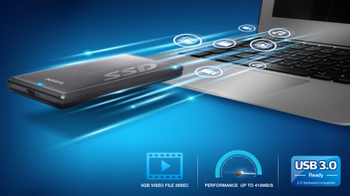 SV620 łączy w sobie odporny na wstrząsy i wydajny dysk SSD z uniwersalnym interfejsem USB 3.0. To pierwszy tego typu produkt w ofercie firmy ADATA. Jako dysk zewnętrzny jest ponad trzykrotnie szybszy od modeli opartych na nośnikach talerzowych (HDD). Umożliwia kopiowanie danych z prędkością do 410 MB/s, a dostęp do przechowywanych na SSD plików jest niemalże natychmiastowy.