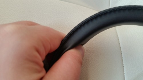 Góra słuchawek wyposażona jest w miękka gąbkę obszytą bardzo delikatną skórą.