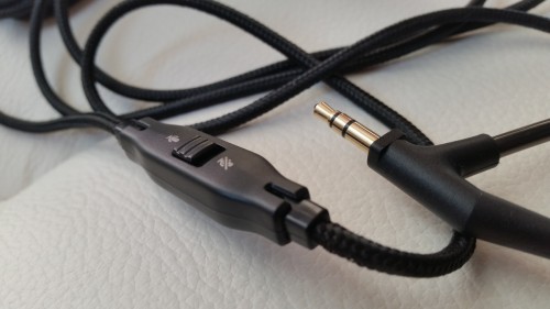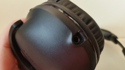 Na dole lewej słuchawki znajduje się gniazdo do wpięcia kabla. Uważam, że takie rozwiązanie jest super. W dowolnym momencie możemy wymienić przewód np. gdy kabel się uszkodzi lub będziemy chcieli przełączyć się pomiędzy gniazdem w PC i telefonem. Nie musimy już posiadać adaptera czy oddzielnych słuchawek.