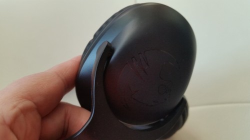 •Z tyłu lewej słuchawki znajdziemy regulator głośności. Patrząc po całości wykonania słuchawek, ten element wygląda trochę tandetnie, ale na całe szczęscie jest tak niezauważalny, że nie ma większego wpływu na cały wygląd.