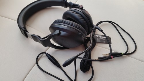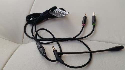- gruby, solidnie wykonany kabel z przymocowanym mikrofonem oraz przyciskiem pozwalającym wyłączyć i włączyć mikrofon – do podłączenia do konsoli czy PC