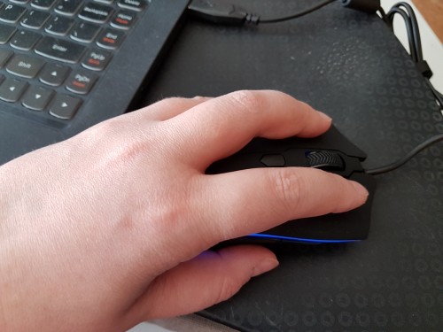 - Działanie sensora sprawdziłam na 3 powierzchniach. Biurko bez podkładki w kolorze jasnego drewna, czarna podkładka czy czerwony koc leżący na mojej kanapie. Myszka na wszystkich tych powierzchniach działała niemalże identycznie. Ruch kursora był płynny, bez zbędnych opóźnień.