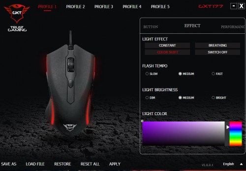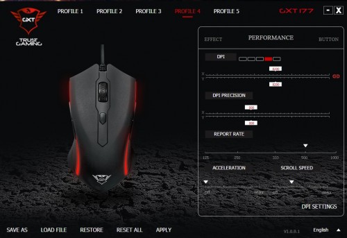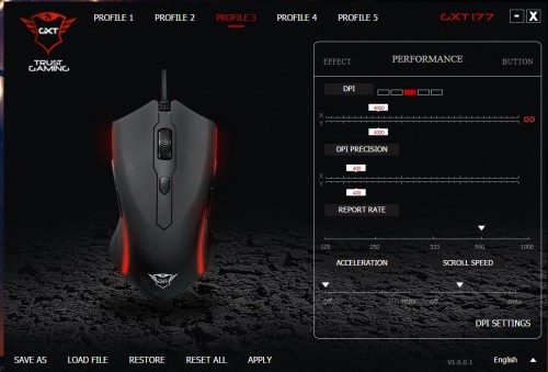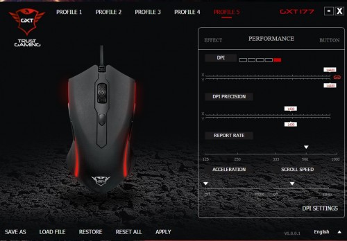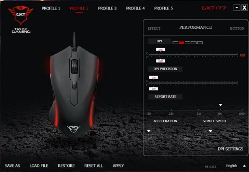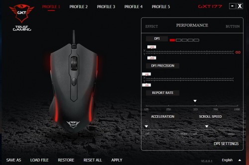 Jednakże jest to bardzo subiektywne odczucie i każdy może dopasować konfigurację do swoich potrzeb poprzez dedykowane narzędzie (link do pobrania: http://www.trust.com/en/product/21294-gxt-177-gaming-mouse#downloads)
