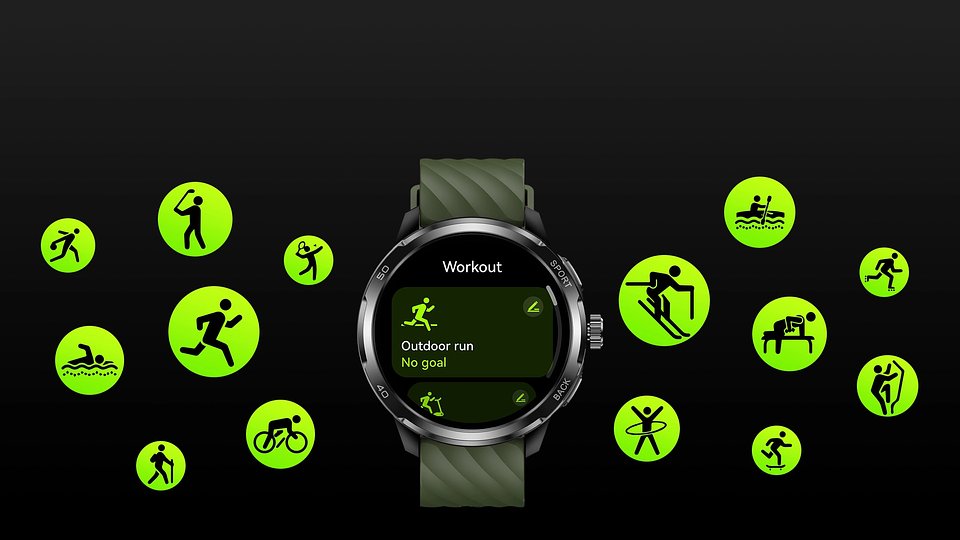 Wbudowana bateria o pojemności 410 mAh zapewnia do 34 dni pracy w trybie czuwania, około 8 dni standardowego użytkowania oraz do 3 dni intensywnej pracy z aktywnymi funkcjami. W zakresie monitorowania zdrowia zegarek oferuje całodobowy pomiar snu, tętna, ciśnienia krwi, poziomu stresu, cyklu menstruacyjnego oraz przypomnienia o długotrwałym siedzeniu. Dla osób aktywnych przygotowano ponad 100 trybów sportowych, a miłośnicy spacerów i aktywności w terenie skorzystają z funkcji zapisu trasy wraz z możliwością powrotu po własnych śladach.