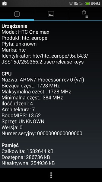 - Android 4.3 z nakładką Sense 5.5