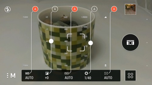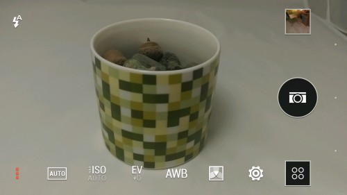W górnym lewym rogu pod ręką znajduje się ikona ustawień lampy błyskowej a na dole dodatkowa lista ustawień, które są bardzo rozbudowane. Mamy do wyboru tryb nocny, HDR, panoramę, makro, ustawienia sceny: Portret, Krajobraz, Tekst, Tylne światło, a nawet ryb ręczny, w którym w intuicyjny sposób możemy regulować balans bieli, ekspozycję, czułość ISO (do 1600), wartość przysłony oraz punkt ostrości. Nie mogło zabraknąć także różnych filtrów.