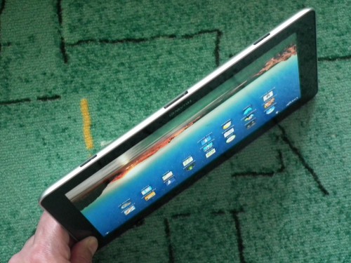 Podczas gdy, niektóre tablety, np. iPad swoją konstrukcją zachęca do korzystania z nich w pionie, tu proporcje ekranu, czy opcjonalna stacja dokująca, zachęcają do użytkowania w pozycji horyzontalnej.