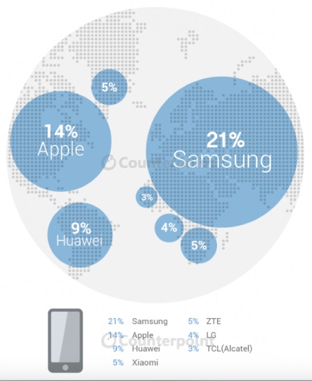 Jak wynika z raportu firmy Counterpoint, badającej światowy rynek smartfonów, 1 na 5 słuchawek sprzedanych w II kwartale 2015 roku należała do Samsunga. Oznacza to, że koreański producent pozostaje największym producentem smartfonów na świecie. Tuż za nim niezmiennie jest Apple.
