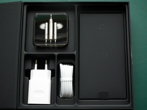 Po otwarciu naszym oczom ukazuje się nasz testowany bohater, umieszczony w specjalnej podstawce. Pod nią znajdują się pozostałe akcesoria: ładowarka sieciowa, kabel microUSB i dobrej klasy słuchawk w specjalnym pudełku. Ponadto osobne pudełeczko zawiera klucz do slotu kart SIM i świetnie się prezentujące etui typu Flip Cover oraz dokumentację.