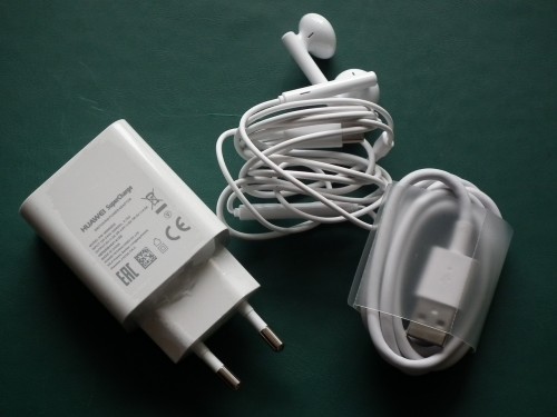 W zestawie znajdziemy telefon, specjalną ładowarkę (SuperCharge), swietny zestaw słuchawkowy, który podłączamy do portu USB, ponieważ smartfon nie ma minijacka, szpilkę do szufladki oraz standardową makulaturę. Dodatkowo producent dorzuca przeźroczyste plecki. Warto dodać, że smartfon od razu został pokryty folią ochronną.