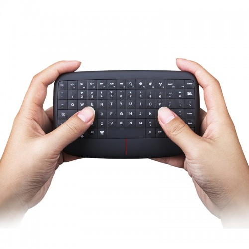 Nie trzeba już zmieniać rąk, by dosięgnąć klawiszy albo panelu dotykowego. Kciukami można dotrzeć do każdego klawisza Lenovo 500 Multimedia Controllera, a także sterować panelem dotykowym bez przekładania urządzenia. Specjalna konstrukcja kontrolera umożliwia stosowanie gestów i kliknięć potrzebnych do wybierania menu, przeglądania zawartości i otwierania aplikacji. Równie łatwa jest obsługa kciukami, którymi można szybko pisać wiadomości, wprowadzać wyszukiwane słowa lub hasła itp.