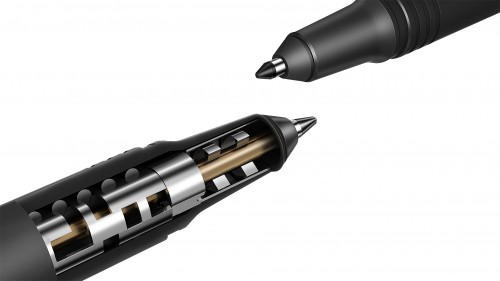Zupełnie jak pióro: Real Pen działa dwufunkcyjnie – jako cyfrowy rysik przewodzący oraz prawdziwe pióro z tuszem. Z tego powodu w urządzeniu znalazł się zarówno układ elektroniczny, jak i końcówka pisząca. Rysik dedykowany do współpracy z panelem dotykowym jest zasilany w technologii EMR, natomiast po zmianie końcówki na wkład z tuszem działa tak, jak zwykły długopis. Inżynierowie Lenovo musieli zatem starannie dobrać odpowiednią końcówkę piszącą z możliwością uzupełniania tuszu, ponieważ było to istotne dla przesyłania sygnału przez pióro i optymalnego użytkowania przy pisaniu. Po licznych testach i poprawkach cel został osiągnięty. W Lenovo wypróbowano ponad 200 piór, zanim znaleziono właściwe rozwiązania.