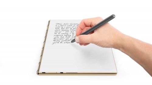 Pisanie na ekranie: Lenovo wdrożyło swoje innowacje z poszanowaniem dotychczasowych sposobów korzystania z ekranów dotykowych i wyposażyło ekran w Yoga Book w technologię AnyPen Lenovo, co umożliwia pisanie rysikiem bezpośrednio na górnym ekranie, jeśli tylko użytkownicy mają na to ochotę. Lenovo musiało więc zadbać o odpowiedni dobór materiałów tak, by rysik współpracował zarówno z wyświetlaczem, panelem dotykowym oraz papierem, a samo używanie go charakteryzowało się najwyższą jakością i czułością porównywalną do komfortu jaki dają tablety graficzne. Udało się to dzięki zastosowaniu elementów z przewodzącego polioksymetylenu (POM), które są takiej samej wielkości, jak naboje do pióra. Jednocześnie skonfigurowano ustawienia ekran i panel dotykowy w taki sposób, by stosunek sygnału do szumu był jak najlepszy oraz żeby części magnetyczne nie zakłócały ani sygnału rysika, ani digitizera, a same pióra działały dokładnie i niezawodnie.