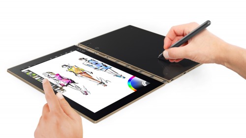 W marcu 2016 roku, Jeff Meredith, wiceprezes i dyrektor generalny grupy biznesowej Lenovo ds. komputerów z systemem tablet Lenovo Yoga Book – urządzenie ze składaną obudową typu „clamshell” łączącą typowy ekran tabletu i w pełni płaską klawiaturę pełniącą również funkcję panelu dotykowego. Wraz z rysikiem Real Pen, działającym cyfrowo i tradycyjnie na wkłady z tuszem, można tworzyć treści na dowolny, najbardziej naturalny dla siebie sposób – na klawiaturze, na panelu dotykowym, ekranie lub po prostu na kartce papieru.