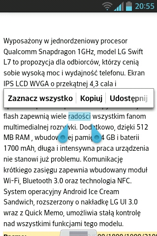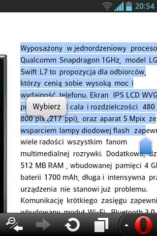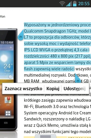 Niestety, wyswietlacz z rozdzielczoscia HVGA z definicji nie jest czytelny – otworz jakakolwiek strone internetowa na L5, a pozniej na zblizonym cenowo Blade 3. Dla mnie ta cecha dyskwalifikuje L5.