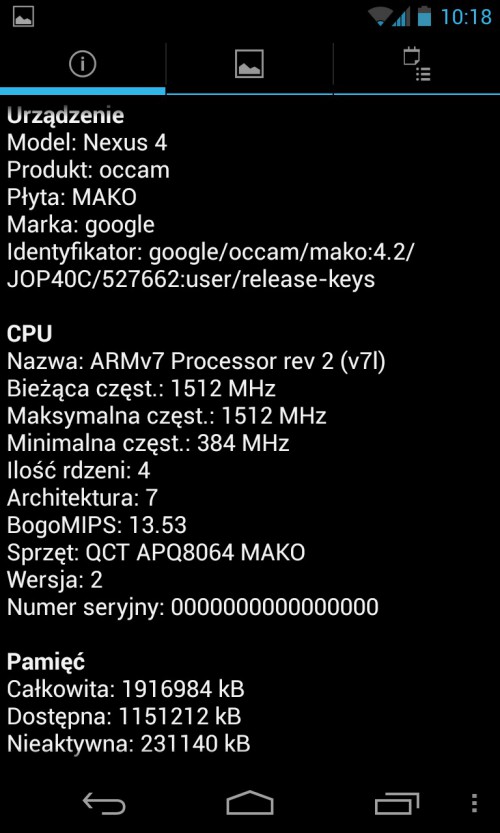 Za płynną pracę Nexus 4 odpowiada, czterordzeniowy procesor Qualcomm S4 Pro i 2 GB pamięci RAM.