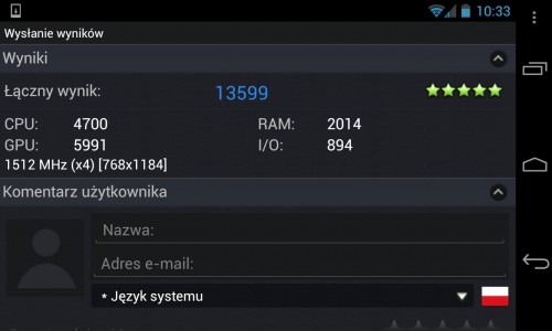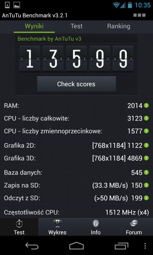 Witam, dość słaby wynik w antutu testowanego egzemplarza. U mnie bez modyfikacji (4.2.2 stock) wyszło 17682. Quadrant też dał lepszy wynik – 4635.